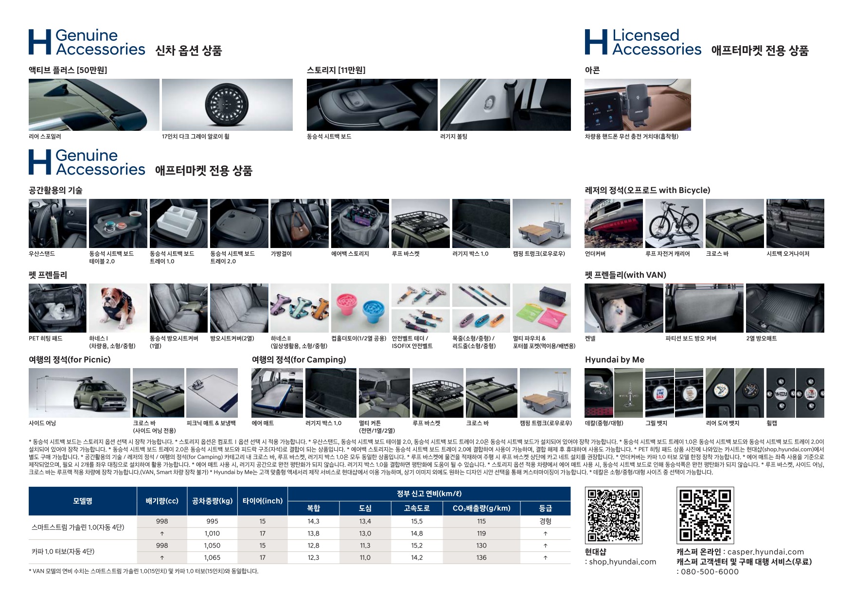 아래는 2026년형 현대 캐스퍼 신차가격표 옵션표 등급표 입니다.
